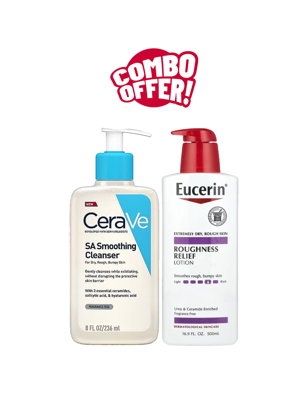 Chicken Skin Combo – CeraVe SA Smoothing Cleanser (236ml) + Eucerin Roughness Relief Lotion (500ml)...